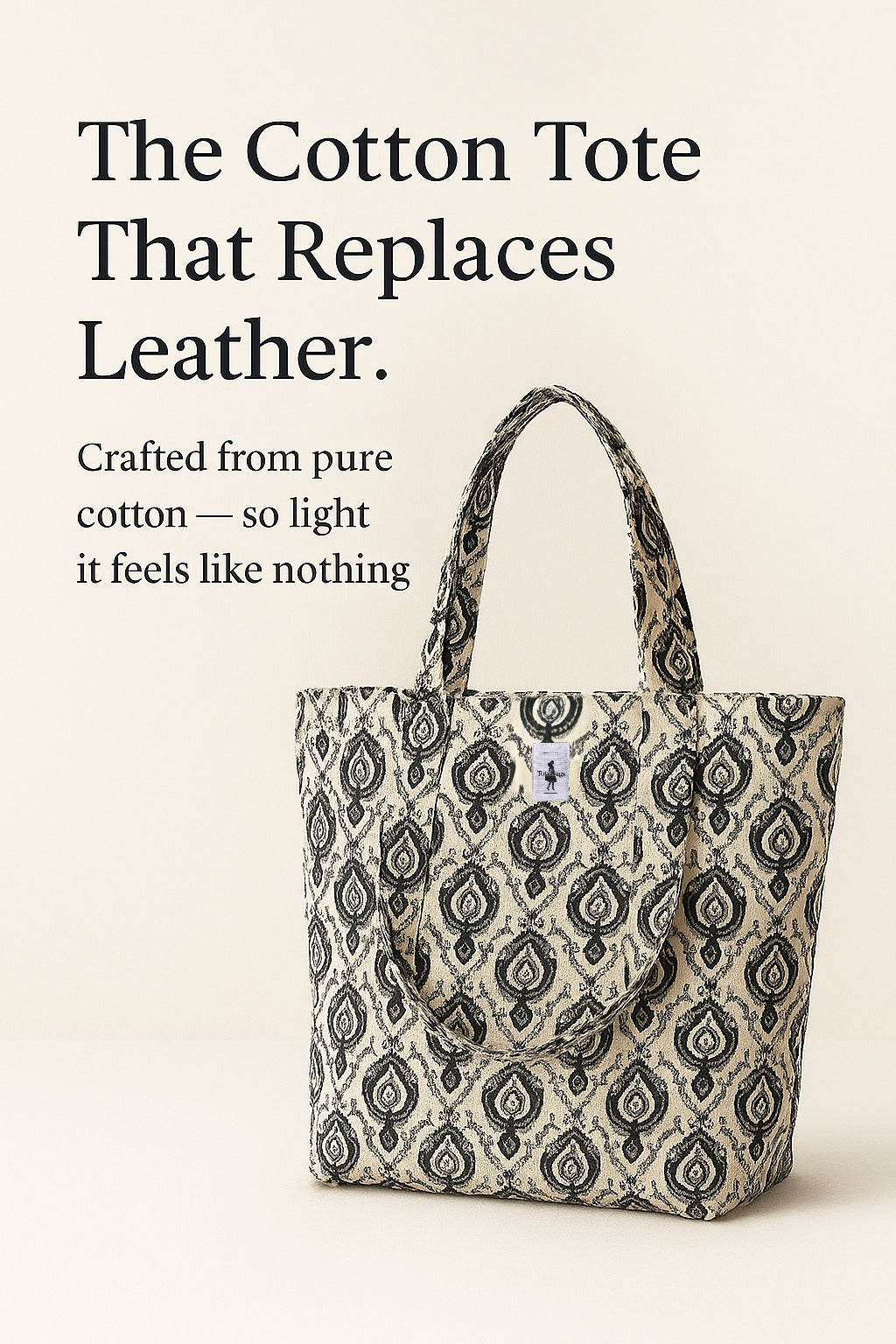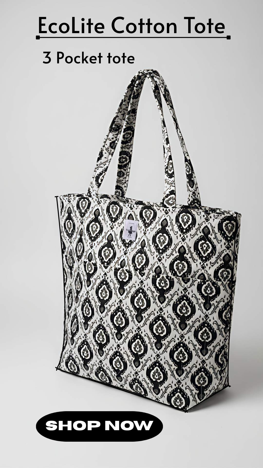 The EcoLite Cotton Tote blends eco-friendly materials with a bold black-and-white pattern, making it perfect for daily errands or casual outings. With three handy pockets and sturdy double handles, it offers both style and practical organization.